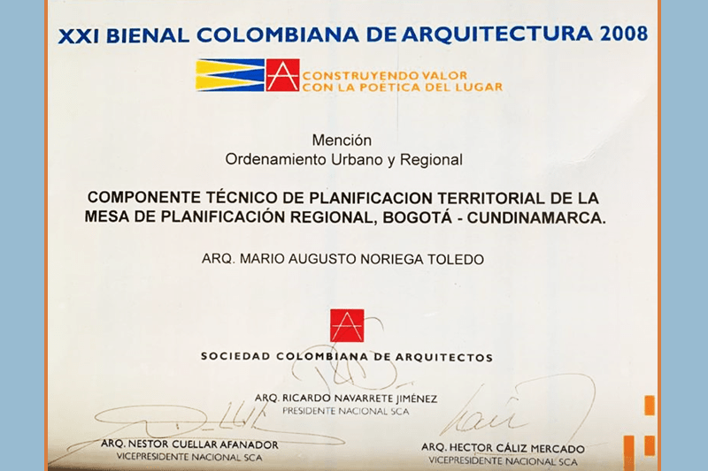Mención de Honor Categoría Ordenamiento Urbano y Regional: Componente Técnico de Planificación Territorial de la Mesa de Planificación Territorial Bogotá – Cundinamarca.
