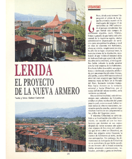 El Nuevo Herald (1990): «Armero: Cinco años después». Carbonell G.; (sobre el diseño de Noriega Restrepo & Asociados para Lérida, Ciudad Regional).