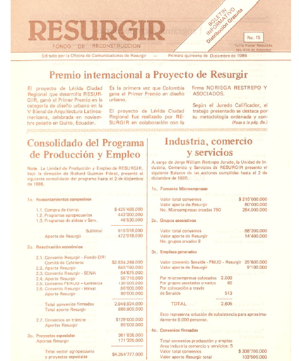 Separata ‘Resurgir’ Revista HABITAR (1986): Sobre el trabajo de Noriega Restrepo & Asociados en la reconstrucción de Armero y el diseño de Lérida, Ciudad Regional.